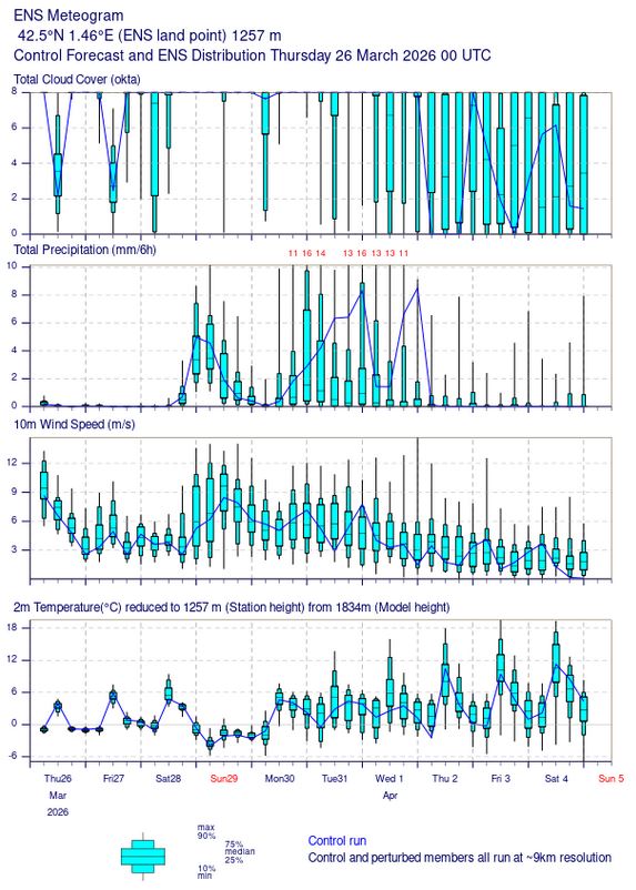 Dades actuals expressades en temps universal (UTC). En horari d'hivern l'hora oficial és l'hora UTC+1 hora i en horari d'estiu l'hora oficial és l'hora UTC+2 hores. Pels paràmetres diaris com la precipitació diària, les màximes i mínimes, la insolació i la radiació són dades del dia actual, des de les 0 hores UTC (dia natural).