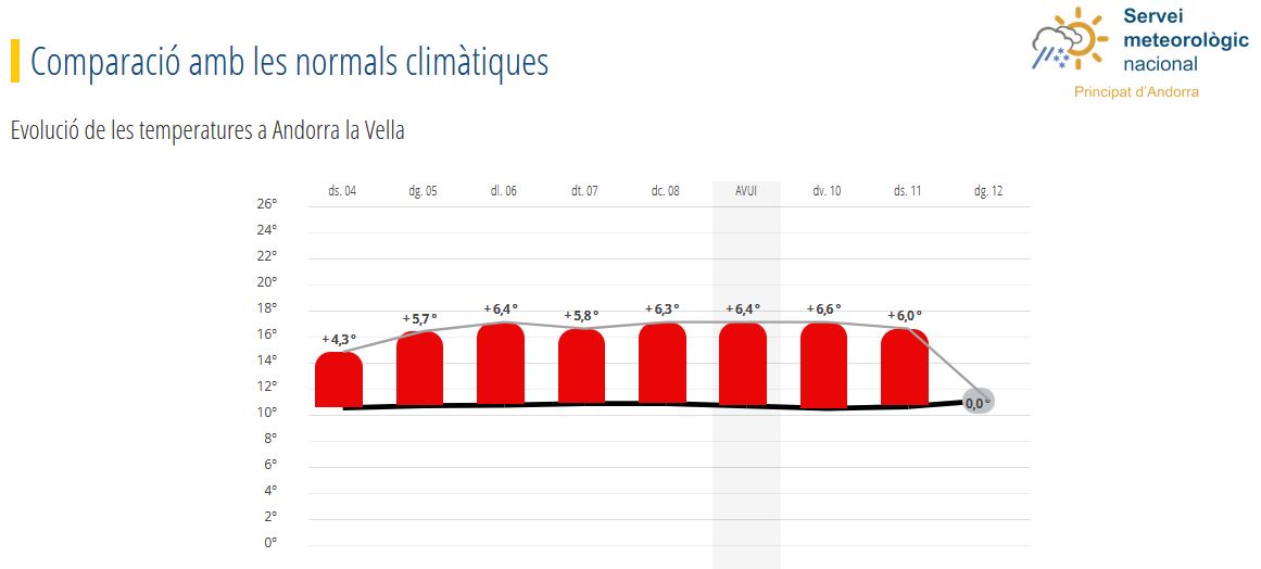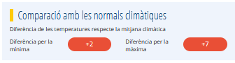Dades corresponents al dia climatològic. Corresponen amb les dades que es poden consultar a l'apartat de climatologia, als resums mensuals. Per garantir la comparació amb les mesures històriques les precipitacions es mesuren de 6 UTC del dia al que correspon la dada a les 6 UTC del dia següent, igual que les temperatures màximes, mentre que les mínimes mostren el valor mínim entre les 18 UTC del dia anterior i les 18UTC del dia al que correspon la dada.