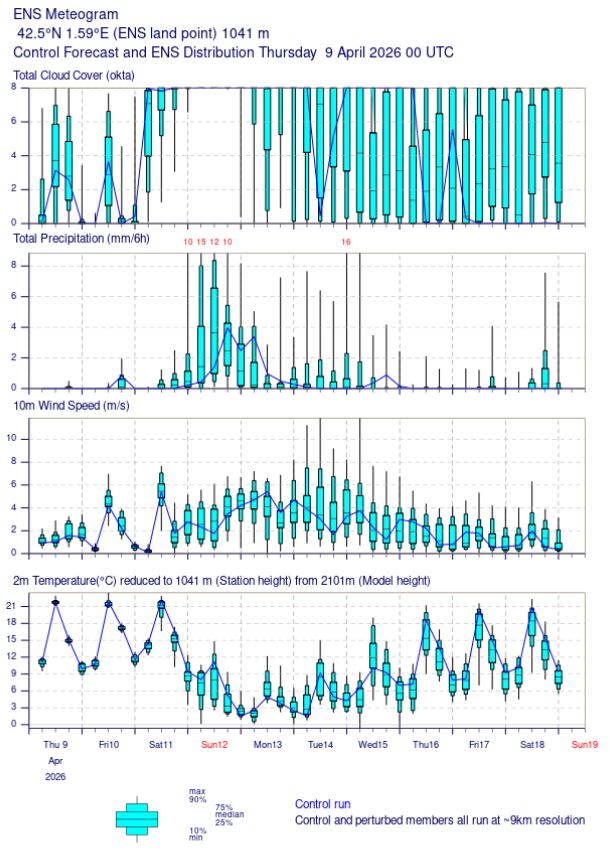 Dades actuals expressades en temps universal (UTC). En horari d'hivern l'hora oficial és l'hora UTC+1 hora i en horari d'estiu l'hora oficial és l'hora UTC+2 hores. Pels paràmetres diaris com la precipitació diària, les màximes i mínimes, la insolació i la radiació són dades del dia actual, des de les 0 hores UTC (dia natural).