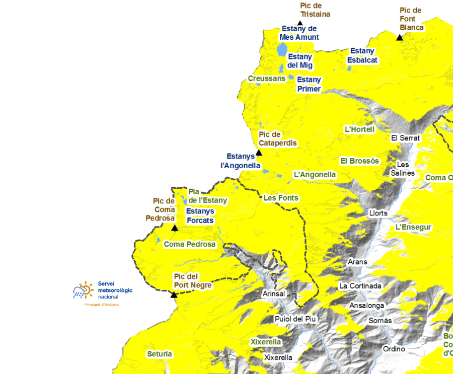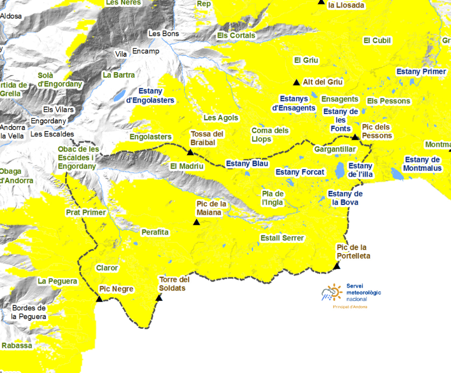 (*) El terreno propenso a la caída de aludes se describe con más detalle en el boletín de peligro de aludes (altitud, orientación de la ladera, tipo de terreno):