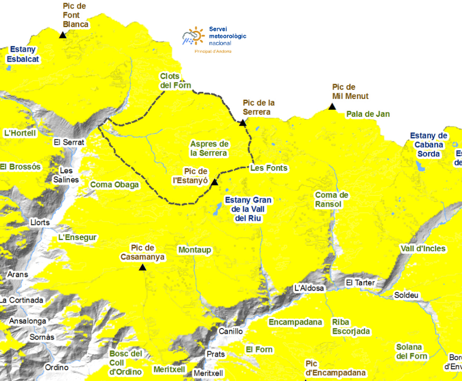 Las excursiones deben realizarse con previa planificación. Se recomienda prudencia a la hora de elegir los itinerarios, evitando, en lo posible, las vertientes inclinadas con la orientación y la altitud que se indican. |